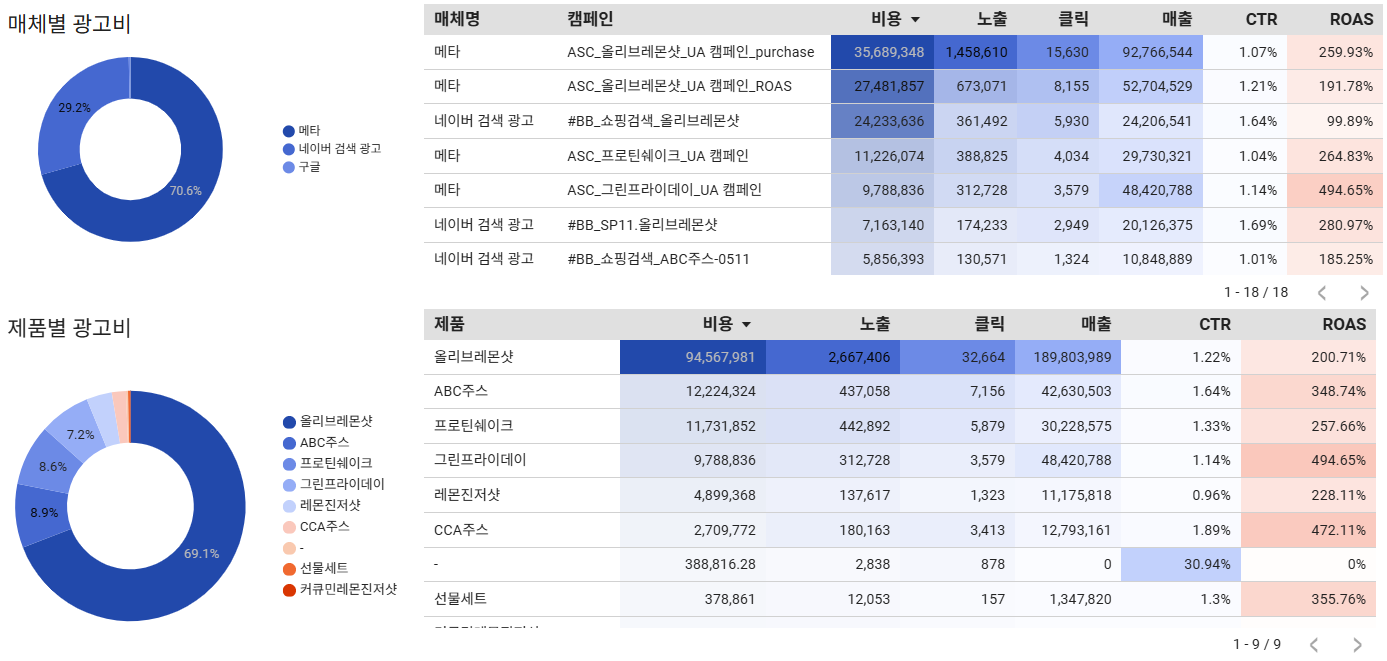 2. 분석 각도의 부재: 광고 성과 분석이 전체 성과의 효율의 나열에 불과하다.