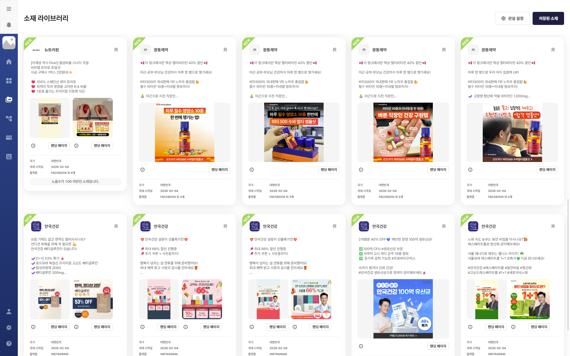기본적으로 퍼포먼스 마케팅에서는 많은 소재를 생성하게 되는데, 소재를 기획할 때 산업 내 다양한 브랜드의 광고 이미지를 토대로 우리만의 광고 소재를 만드는 것이 중요합니다. 제품이나 소구점이 너무 겹치게 되면 우리의 차별성이 떨어질 것이고, 너무 달라버리면 트렌드를 맞추지 못하고 있다는 의미일 수도 있습니다.