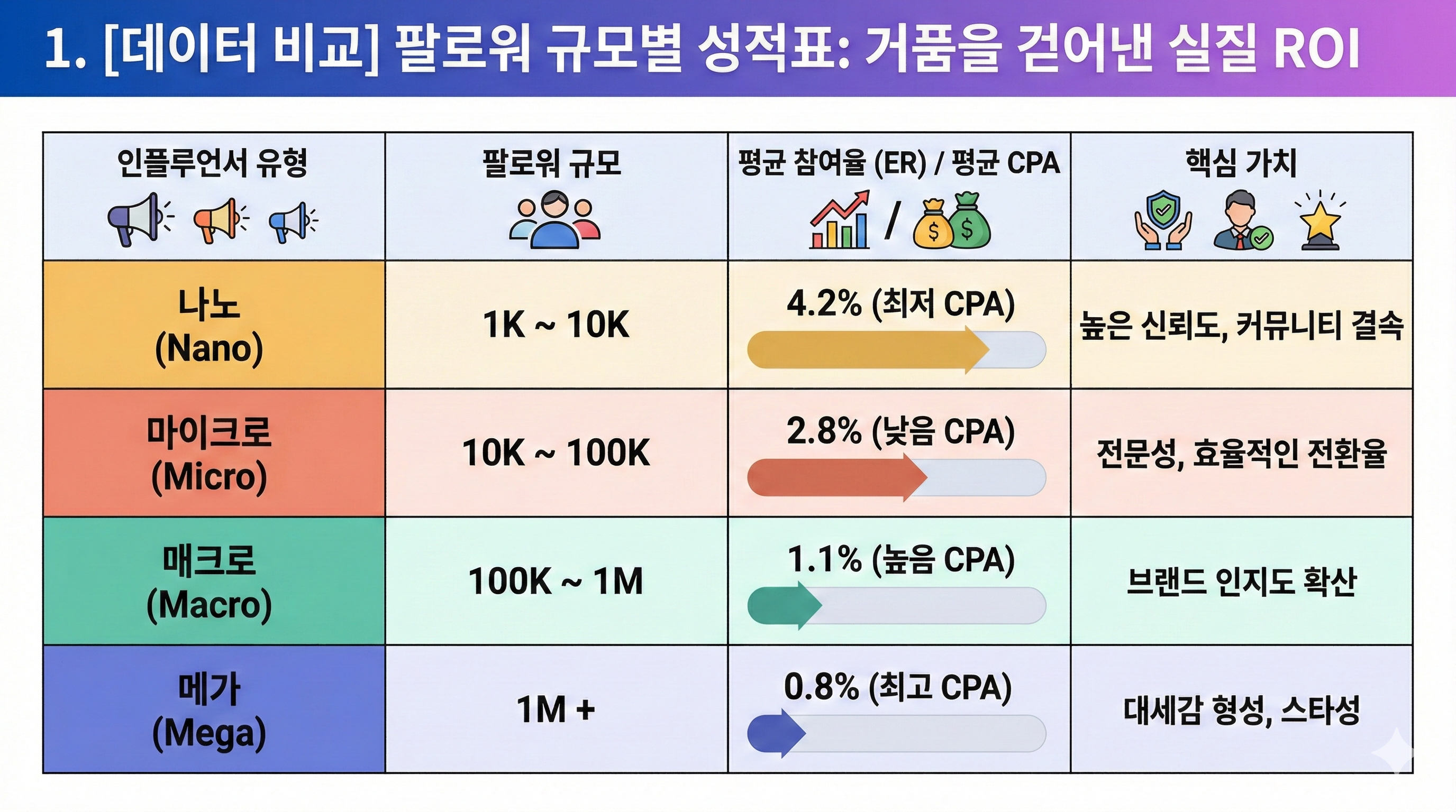 1. [데이터 비교] 팔로워 규모별 성적표: 거품을 걷어낸 실질 ROI