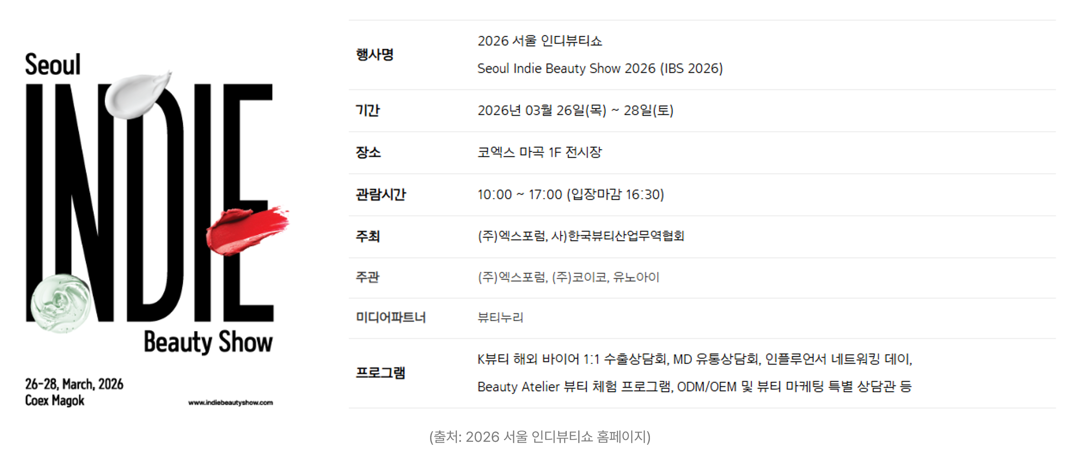 ๊ตญ๋ด ์ ๋ง ๋ทฐํฐ ๋ธ๋๋์ ํ์ ๊ณผ ์ฑ์ฅ์ ์ง์ํ๋ ์ด๋ฒ ํ์ฌ๋ 2026๋ 3์ 26์ผ(๋ชฉ)๋ถํฐ 28์ผ(ํ )๊น์ง ์ฌํ๊ฐ ์ฝ์์ค ๋ง๊ณก(Coex Magok Le West)์์ ์งํ๋ฉ๋๋ค. '์ฐจ์ธ๋ ๋ทฐํฐ์ ๋ฏธ๋'๋ผ๋ ์ฌ๋ก๊ฑด ์๋ ๋งค์ผ ๋ค๋ฅธ ํ ๋ง๋ก ์์ฐฌ ์ธ์ ๋ค์ด ์ค๋น๋์ด ์์ต๋๋ค.
