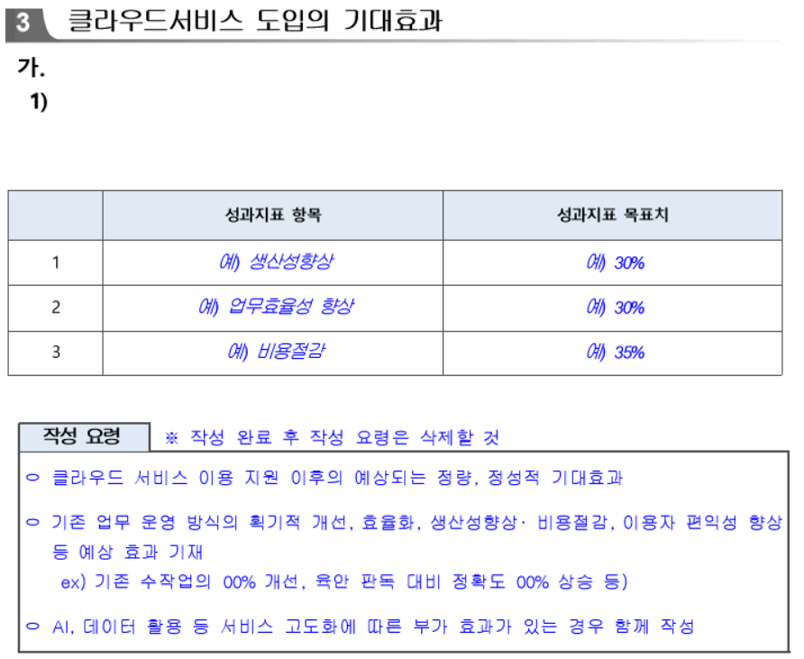 클라우드 바우처 수요기업으로 신청하는 것 자체는 간단하지만, 60개 수요기업을 지원하기 때문에 신청서의 핵심 항목인 '클라우드 서비스 이용계획서'를 잘 작성하는 것이 중요합니다.