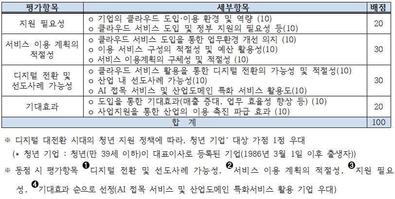 클라우드 바우처는 다음과 같이 신청 기준을 정의하고 있습니다.