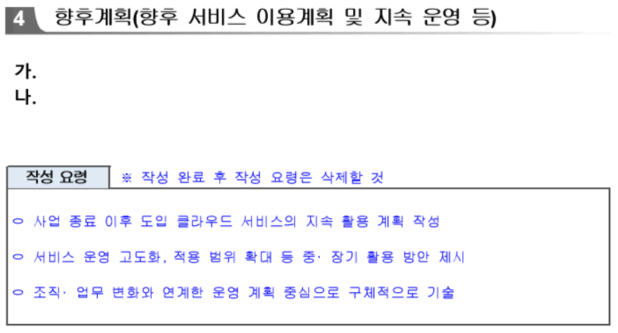클라우드 서비스 이용계획서는 크게 4개 영역으로 구성되어 있습니다.