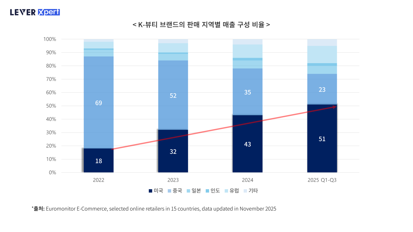 또한 K-뷰티 브랜드들은 초창기 가성비 전략에서 벗어나 점차 프리미엄 세그먼트로 이동하며, 오프라인 채널 확장·현지 프로모션 강화·브랜드 리포지셔닝 등을 통해 안정적인 구조를 갖춰가는 단계에 접어들고 있습니다.