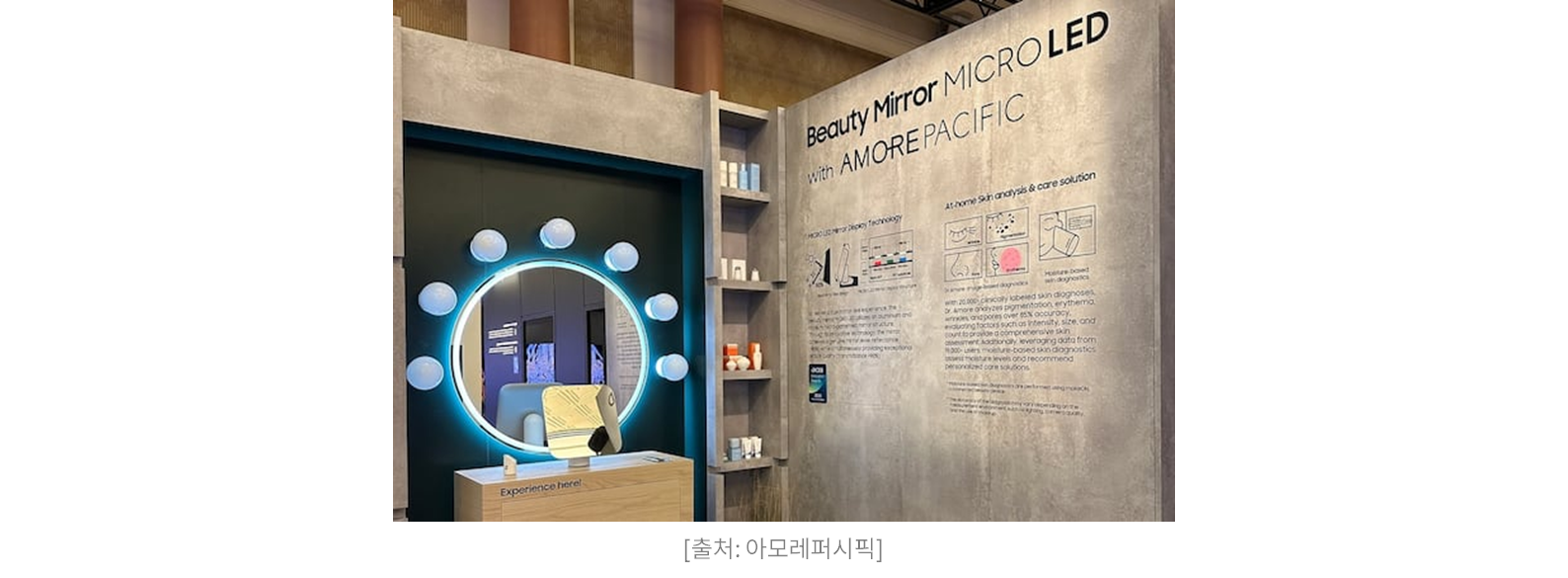 이번 CES에서 흥미로웠던 장면은 삼성전자 전시장 한복판에 등장한 AI 뷰티 미러였습니다. 아모레퍼시픽의 피부 분석 기술을 탑재한 이 뷰티 미러는, 카메라 기반 광학 진단을 통해 모공·홍반·색소·주름 상태를 정밀 분석합니다.