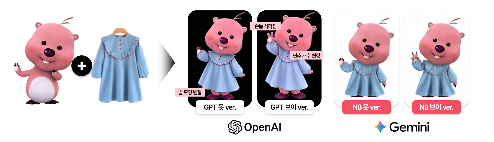 나노바나나 프로의 가장 큰 변화는 일관성(consistency)입니다. 기존 AI 모델은 동일한 인물이나 제품을 여러 번 생성할 경우, 형태·스타일이 미묘하게 달라지는 한계가 있었는데요. 나노바나나 프로는 동일 인물·제품을 거의 동일하게 유지하며 포즈·배경 등만 안정적으로 바꾸는 것이 가능합니다. 이는 한 번 만든 비주얼을 다양한 버전으로 확장해야 하는 광고·브랜딩 콘텐츠 제작 환경에서 매우 중요한 강점입니다.